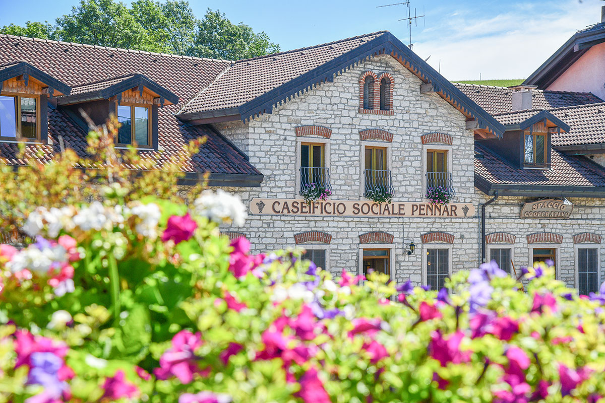 Dans l’après-midi, visite et dégustation à la fromagerie Pennar, reconnue au niveau international pour la production de fromage Asiago. Le fromage Asiago AOP se présente sous la forme d’une grosse meule très épaisse au lait de vache. Ce cousin des gruyères alpins (fromages à pâte pressée) présente la particularité d’avoir une pâte constellée de petits trous de fermentation. Il existe en deux versions distinctes. L’Asiago pressato (pressé), fabriqué au lait entier (souvent pasteurisé) consommé plutôt jeune, sa pâte est très tendre et sa saveur douce. L’Asiago d’allevo (affiné) est, lui, destiné à prendre de l’âge : sa pâte s’assèche et se corse au fil des mois, son goût peut alors devenir pénétrant et prononcé.